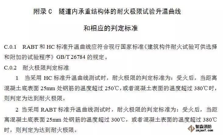 對于通行機動車的三類隧道,火災(zāi)升溫曲線應(yīng)采用本規(guī)范附錄C第C.0.1條規(guī)定的HC標準升溫曲線,耐火極限不應(yīng)低于2.00h;