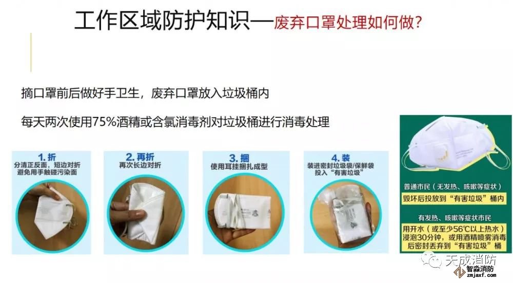 防疫期間,摘口罩前后做好手衛生,廢棄口罩放入垃圾桶內,每天兩次使用75%酒精或含氯消毒劑對垃圾桶進行消毒處理。