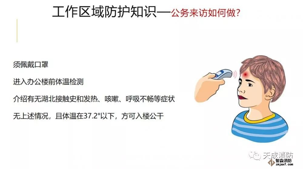 進入辦公樓前自覺接受體溫檢測,體溫正??扇霕枪ぷ?,并到衛生間洗手。若體溫超過37.2℃,請勿入樓工作,并回家觀察休息,必要時到醫院就診。