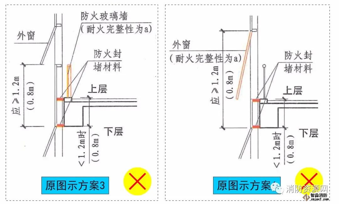 1、窗間墻、窗檻墻和防火挑檐,是防止火災通過建筑外立面的開口從建筑外部蔓延的防火分隔措施。