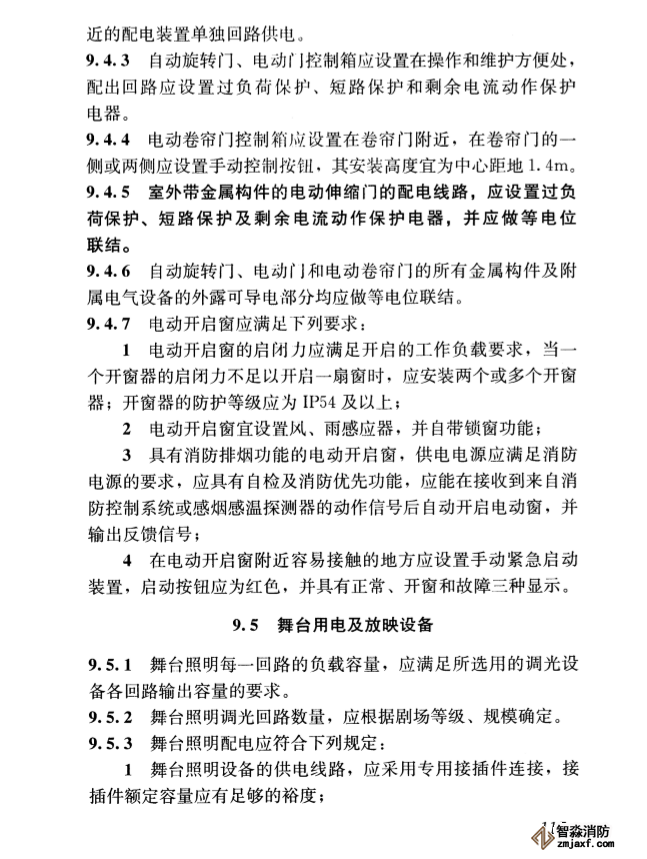 解析:此條與JGJ242-2011的8.3.1大致保持一致,8.3.1 電動門應由就近配電箱(柜)引專用回路供電,供電回路應裝設短路、過負荷和剩余電流動作保護器,并應在電動門就地裝設隔離電器和手動控制開關或按鈕。