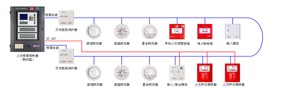 火災探測報警系統由火災報警控制器、觸發器件和火災警報裝置等組成,能及時、準確地探測保護對象的初起火災,并做出報警響應,告知建筑中的人員火災的發生,從而使建筑中的人員有足夠的時間在火災發展蔓延到危害生命安全的程度時疏散至安全地帶,是保障人員生命安全的最基本的建筑消防系統。
