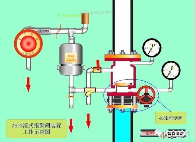 6)應(yīng)使報(bào)警閥前后的管道中能順利充滿水;壓力波動時(shí),水力警鈴不應(yīng)發(fā)生誤報(bào)警。