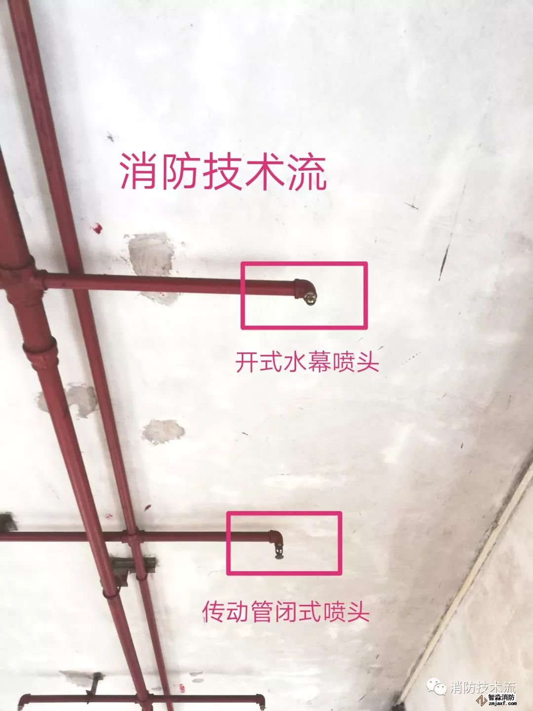 ↑傳動(dòng)管閉式噴頭與水幕噴頭交錯(cuò)分布