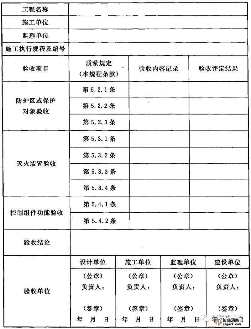 表C.0.2 干粉滅火裝置安裝工程質量驗收記錄