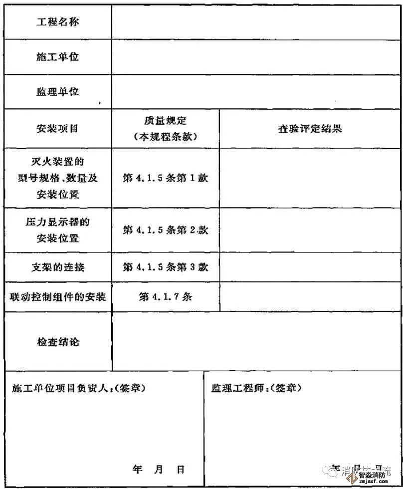 C.0.1 干粉滅火裝置安裝工程資料核查記錄見表C.0.1。