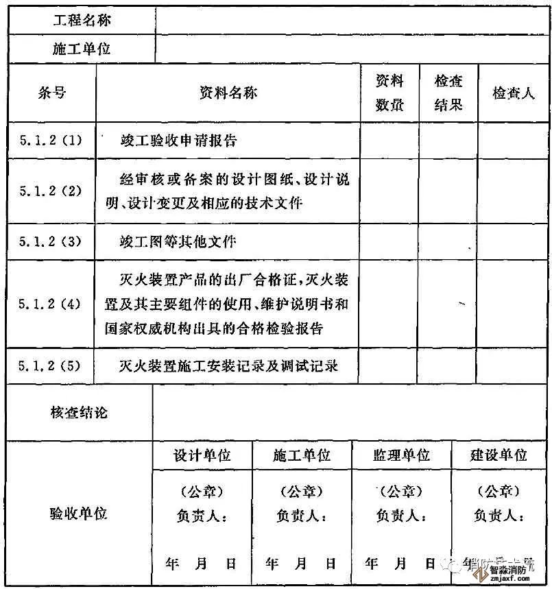 表C.0.1 干粉滅火裝置安裝工程資料核查記錄