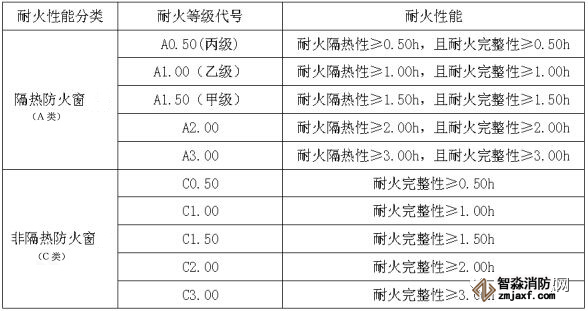 3、如上表所述,防火窗分為隔熱防火窗(A類)和非隔熱防火窗(C類),隔熱防火窗滿足耐火完整性和耐火隔熱性要求,非隔熱防火窗僅滿足耐火完整性要求。