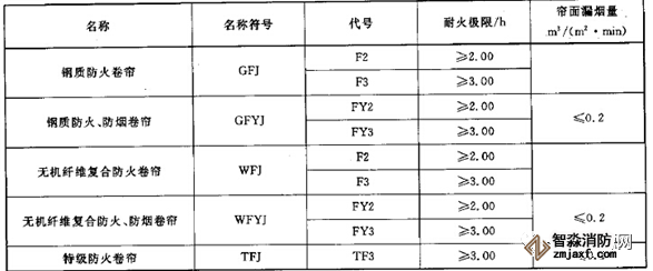 注1:鋼質防火卷簾,指用鋼質材料做簾板、導軌、座板、門楣、箱體等,并配以卷門機和控制箱所組成的能符合耐火完整性要求的卷簾。