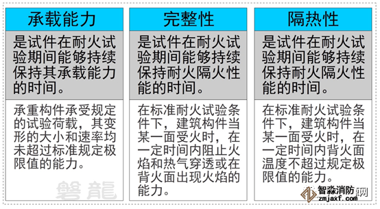 1、耐火極限是在標準耐火試驗條件下,建筑構件、配件或結構從受到火的作用時起,至失去承載能力、完整性或隔熱性時止所用時間(用小時表示)。