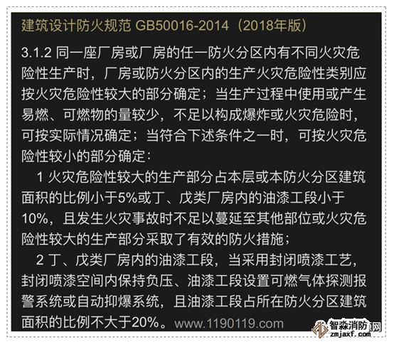 生產的火災危險性分類,當滿足“按危險性較小的部分來確定火災危險性分類”的條件時,可能會出現合規不合理的情形,需要酌情處置!