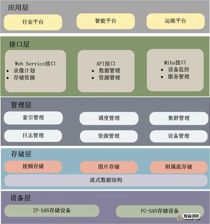 在管理層,融合了索引管理、計劃管理、調(diào)度管理、資源管理、集群管理、設(shè)備管理等多種核心的管理功能。可以實現(xiàn)存儲設(shè)備的邏輯虛擬化管理、多鏈路冗余管理、錄像計劃的主動下發(fā),以及硬件設(shè)備的狀態(tài)監(jiān)控和故障維護等;實現(xiàn)整個存儲系統(tǒng)的虛擬化的統(tǒng)一管理,實現(xiàn)上層服務(wù)(視頻錄像、回放、查詢、智能分析數(shù)據(jù)請求等)的響應(yīng)。