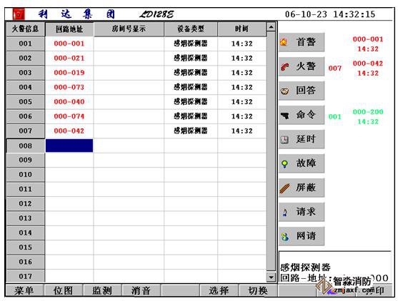 在主菜單界面下,按“火警信息”鍵,查看所有火警。